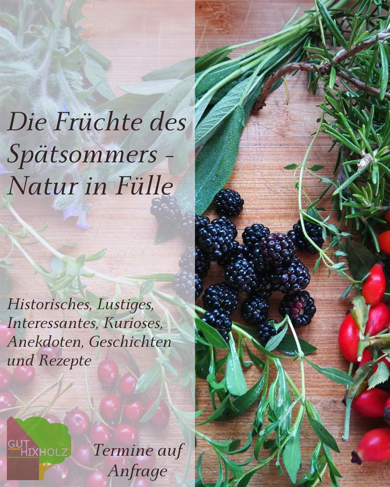 Beim abendlichen Spaziergang besuchen wir die Felder des Bauernhofs und lernen heimische Wildkräuter und Wildfrüchte kennen. Wir erfahren, welche Früchte und Kräuter essbar sind und hören manch interessante Anekdote und Geschichte dazu.
